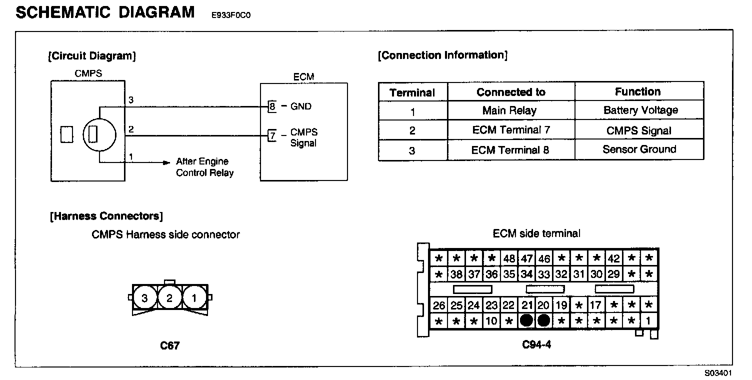 - Check for a open in the power supply circuit between the main relay and the crankshaft position sensor,