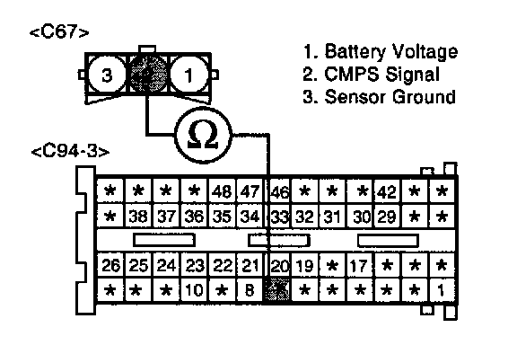 Check CMP sensor for contamination, deterioration, or damage. Substitute with a known-good CMP sensor and check for proper operation. If the problem is corrected, replace CMP sensor and then go to "Verification of Vehicle Repair" procedure.