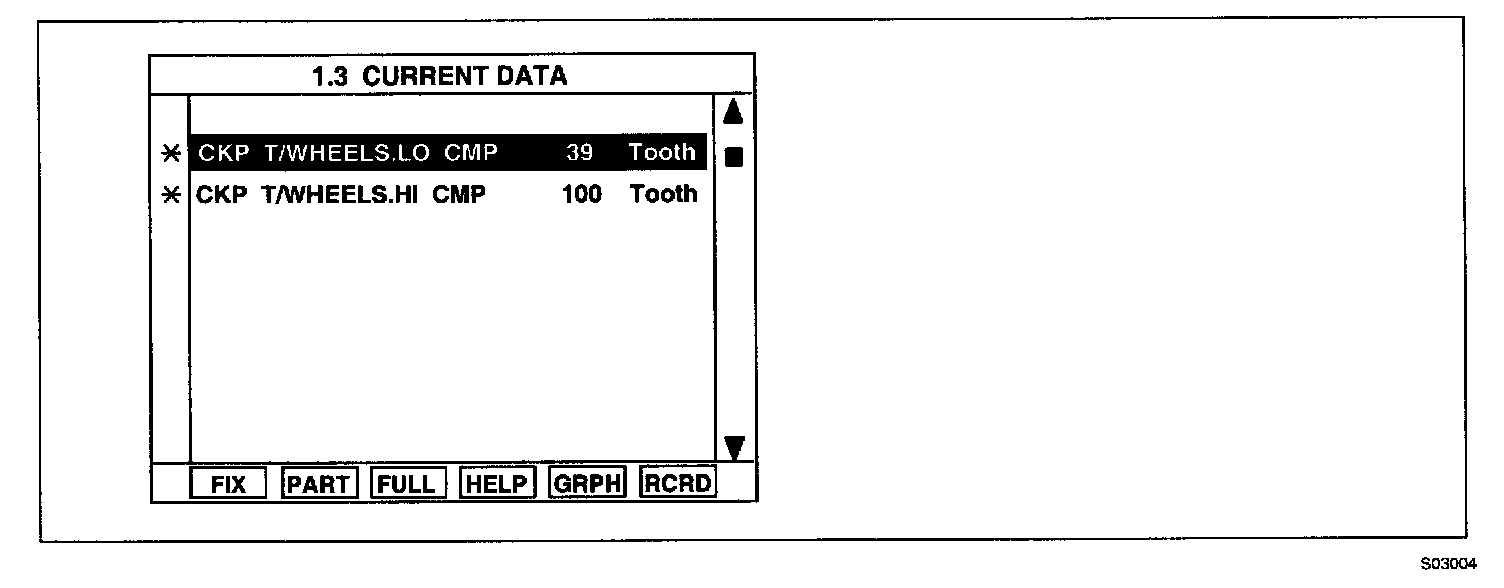 3. Monitor "CKP T/WHEELS-LO CMP" & "CKP T/WHEELS-HI CMP" parameters on the Scantool data list.
