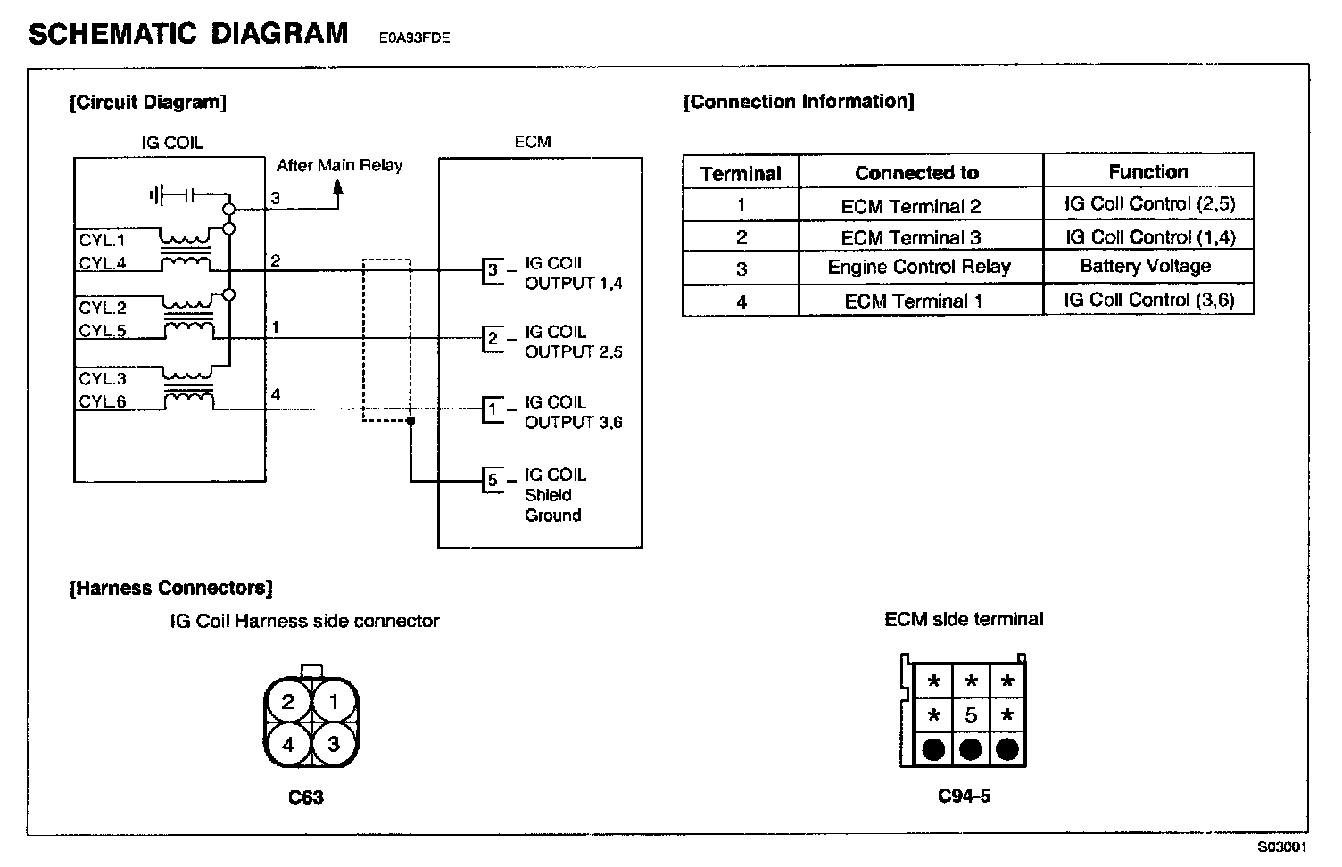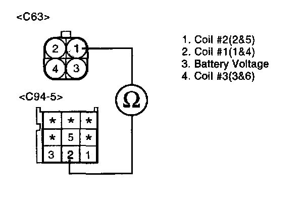 1. Measure resistance between terminal 1 of the coil harness connector and chassis ground.