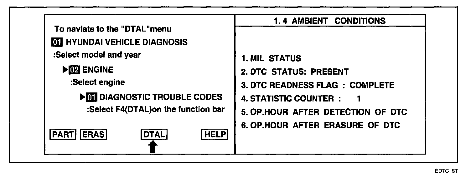 2. Press F4(DTAL) to select DTC information from the DTCs menu.