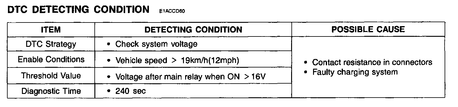 ECM sets DTC P0563 if the ECM detects system voltage lower than the possible range of battery voltage.