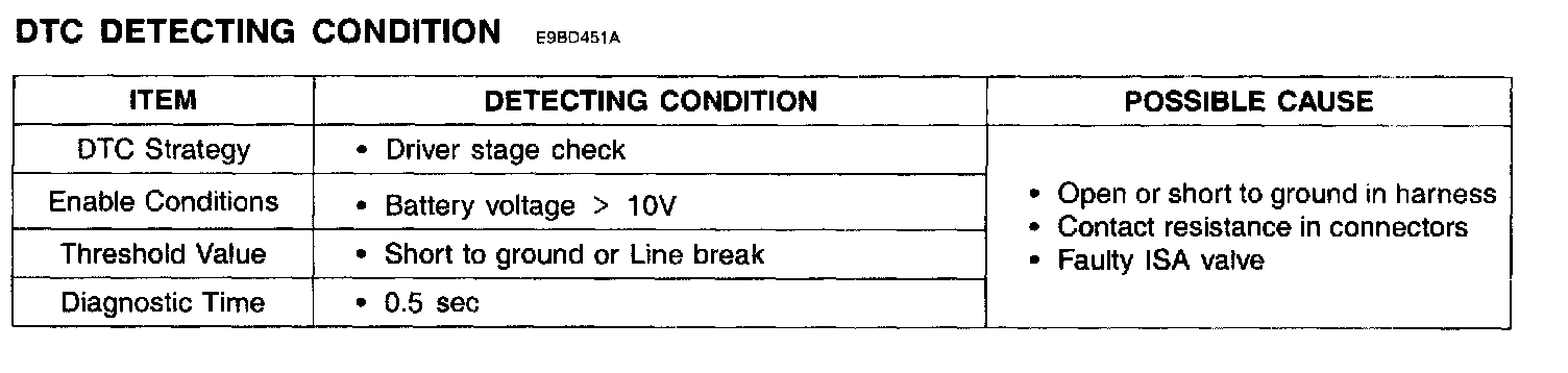 ECM sets DTC P1505 if the ECM detects that the ISA(OPEN) control circuit is open or short to ground.