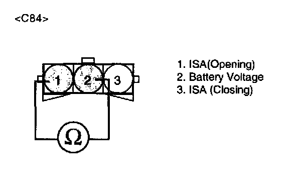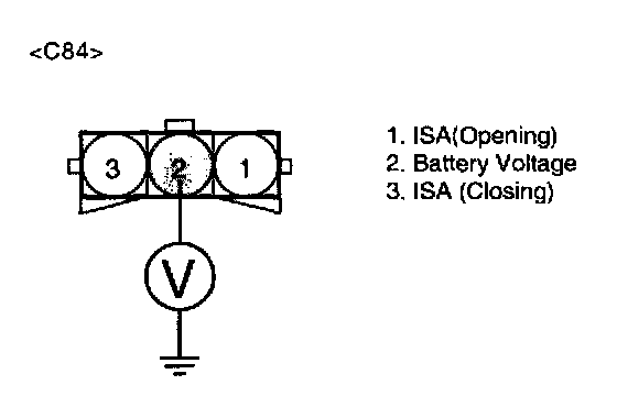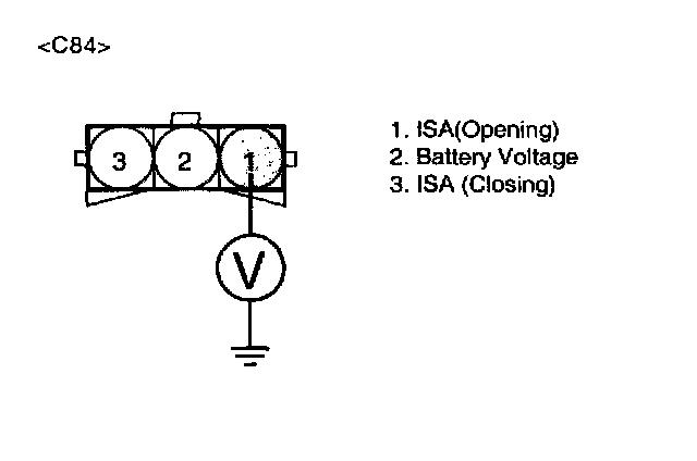 2. Measure voltage between terminal 1 of the ISA harness connector and chassis ground.