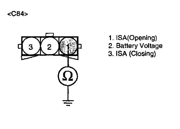 2. Measure resistance between terminal 1 of the ISA harness connector and chassis ground.
