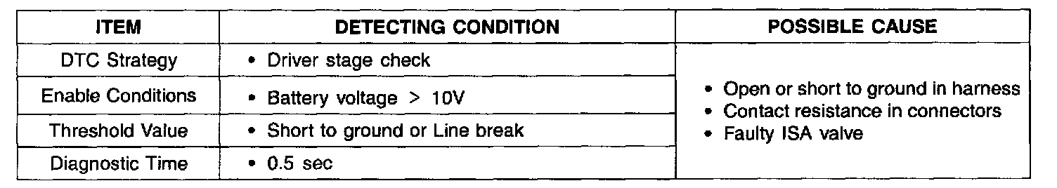 ECM sets DTC P1507 if the ECM detects that the ISA(OPEN) control circuit is open or short to ground