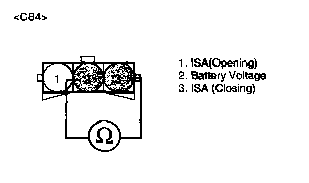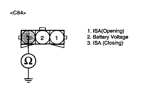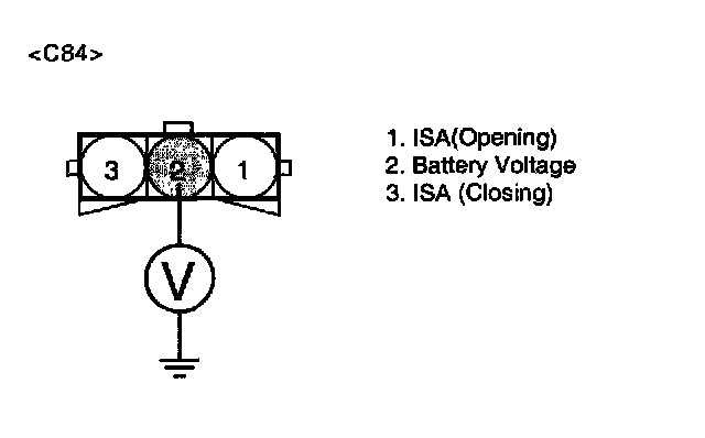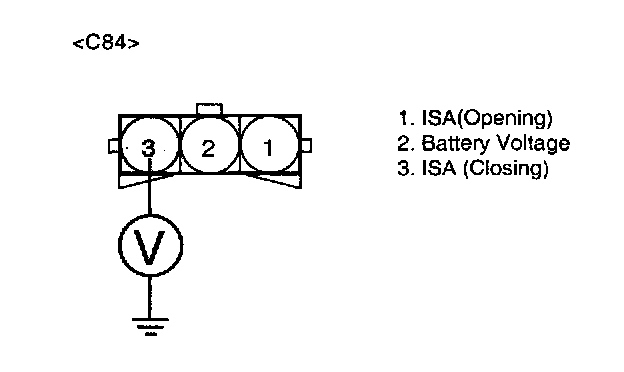 2. Measure voltage between terminal 3 of the ISA harness connector and chassis ground.