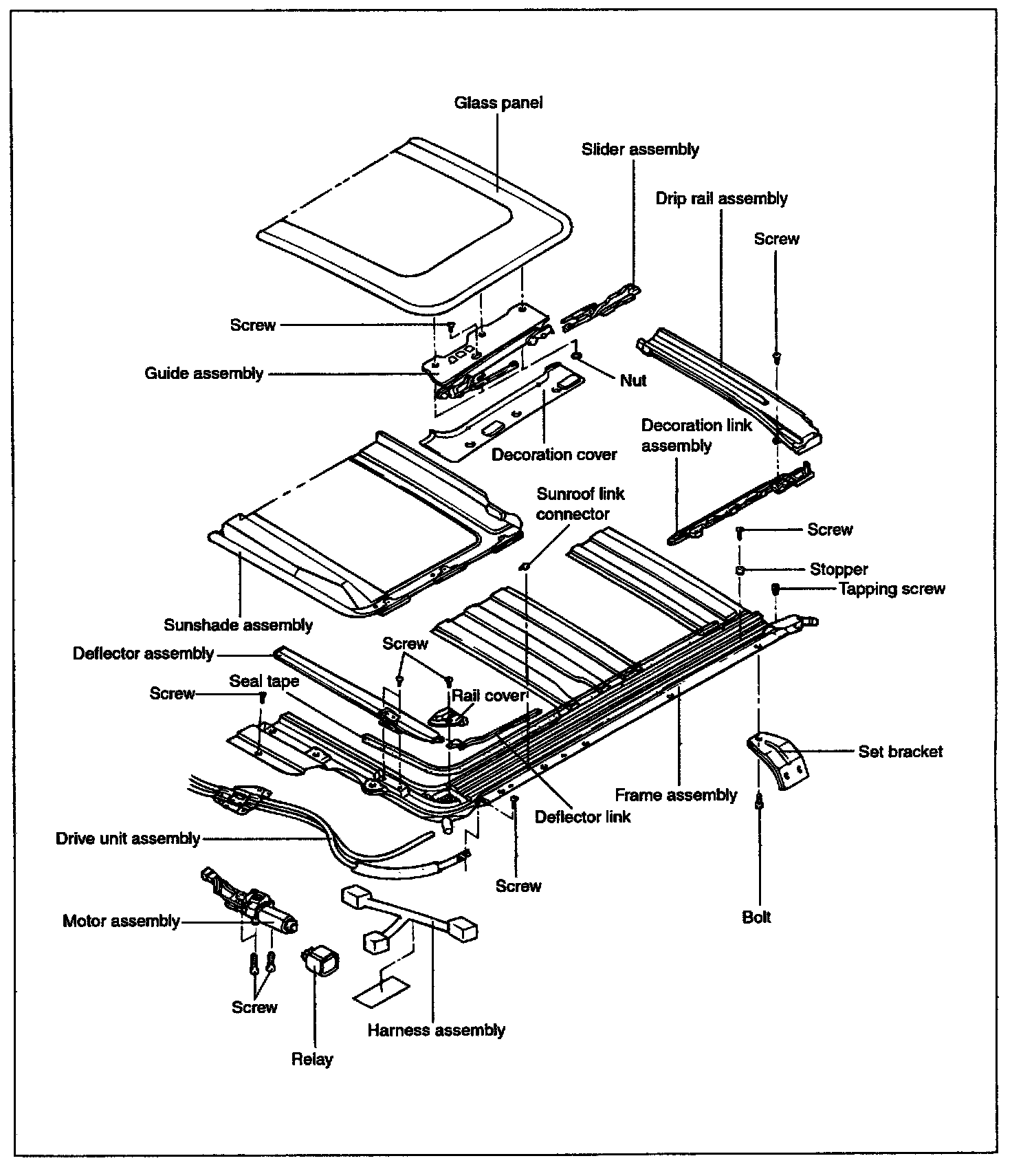 NOTE: When removing the sunroof assembly, carefully pull out the assembly to avoid damaging other parts.