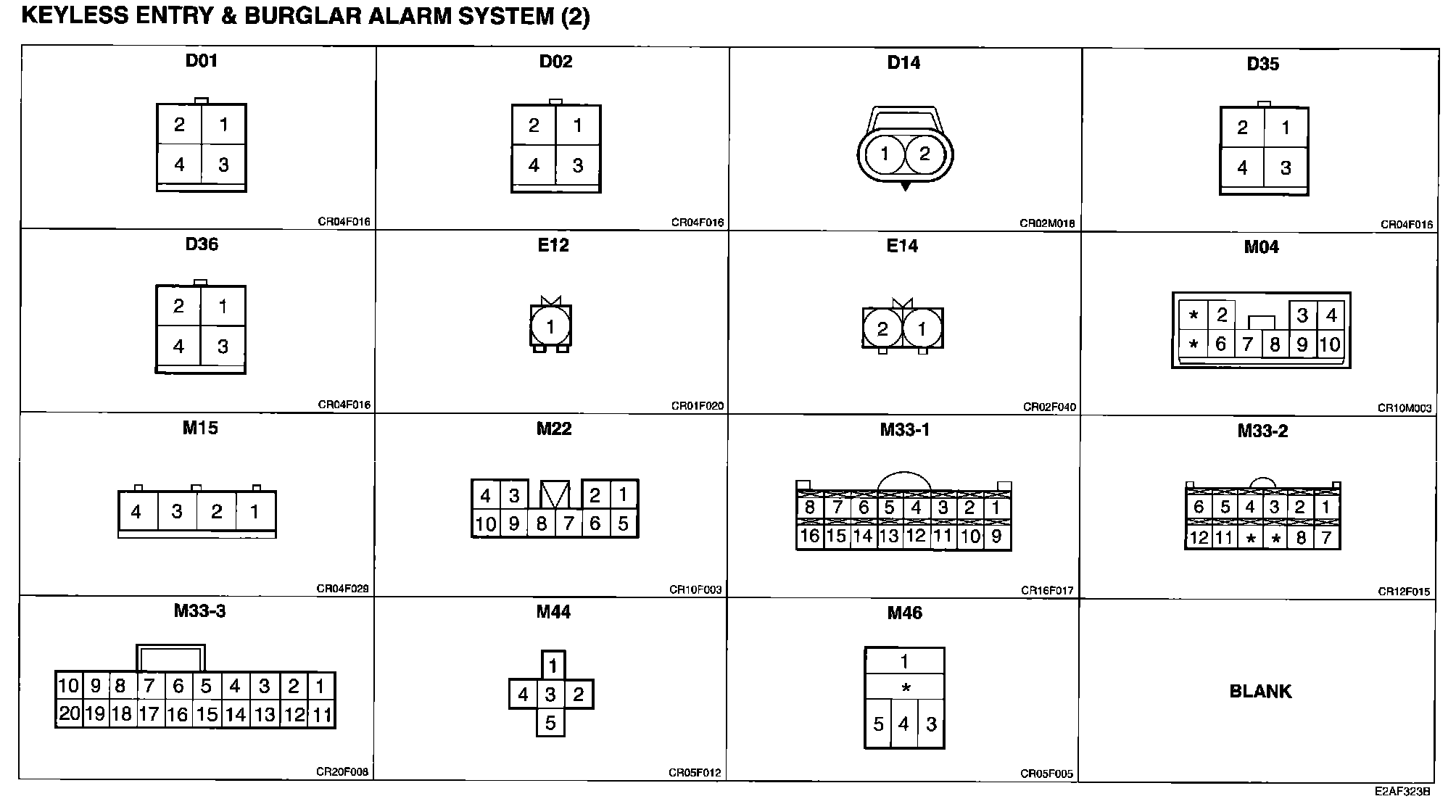 Keyless Entry And Burglar Alarm System (2) Connector Pin Outs: