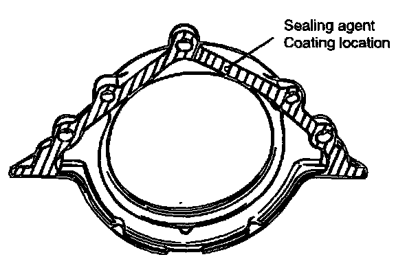 9. Apply sealant to the area shown in the illustration. Install the oil seal case in the cylinder block.