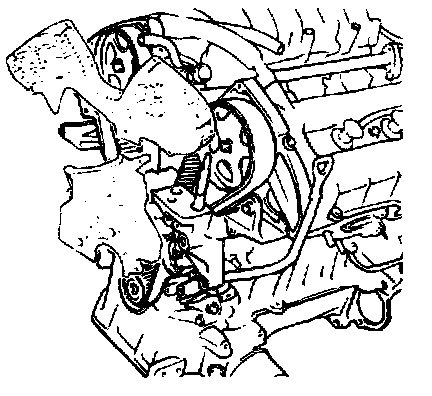 NOTE: Insert and install the idler pulley to the roll pin that is pressed in the water pump boss.