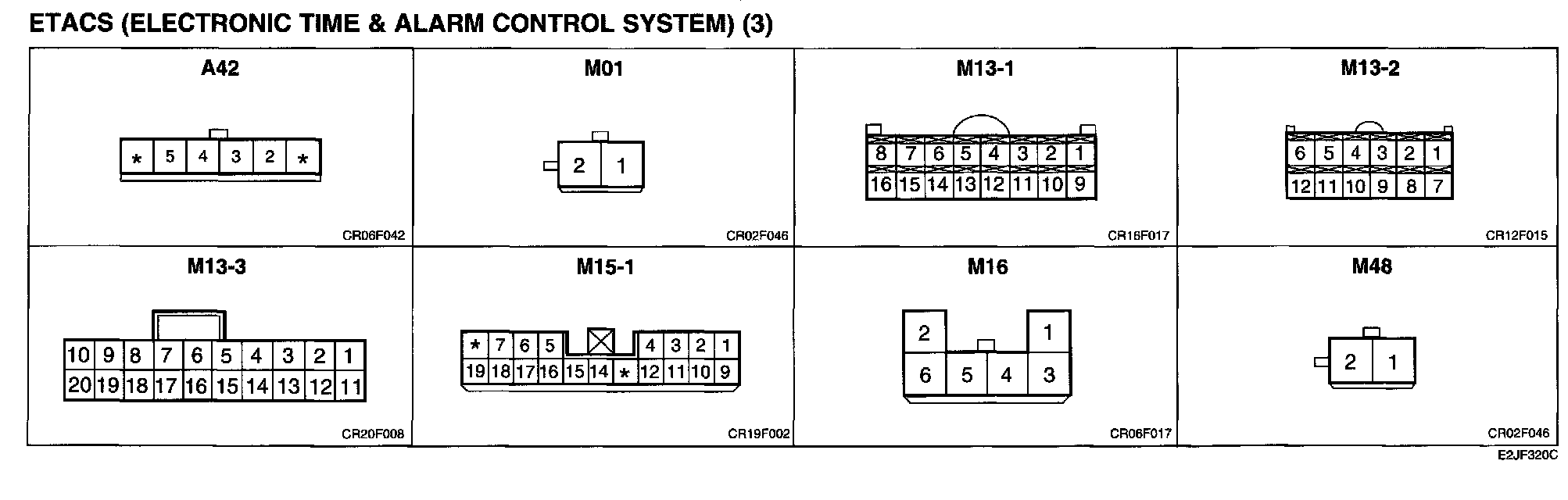 ETACS (Electronic Time & Alarm Control System) (3) Connector Pin Outs:
