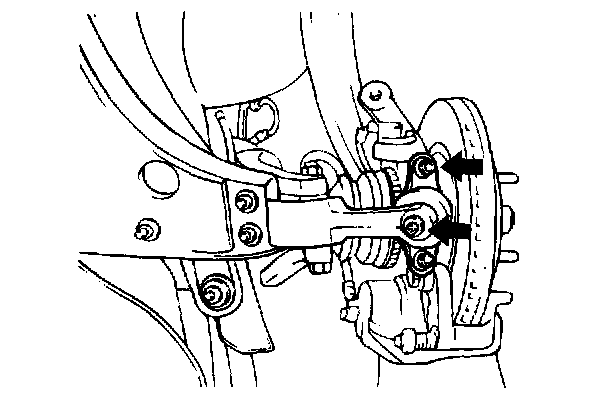 6. Remove the 2 bolts and disconnect the ball joint from the knuckle.