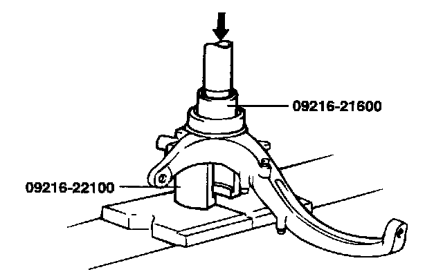 2. Using the special tool (09216-21100), press-in the bearing to the knuckle.