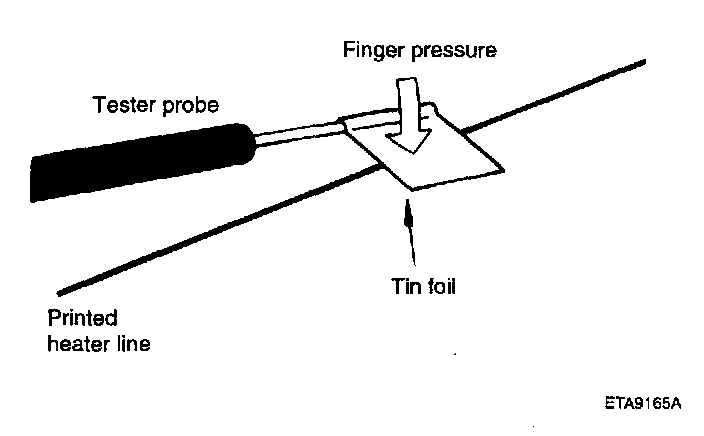 CAUTION: Wrap tin foil around the end of the voltmeter test lead to prevent damaging the heater line. Apply finger pressure on the tin foil, moving the tin foil along the grid line to check for open circuits.