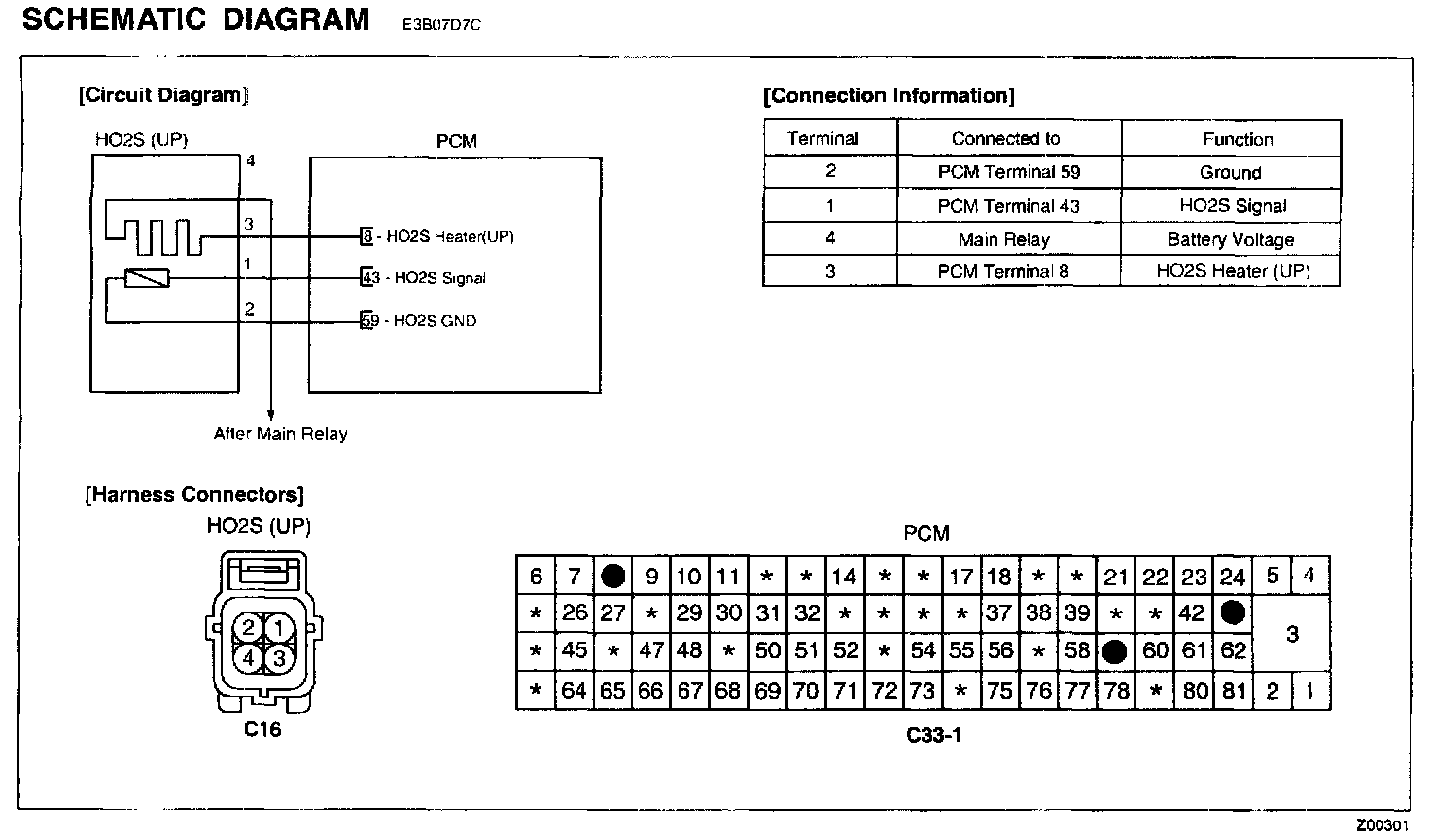 2. Disconnect HO2S and PCM connectors.