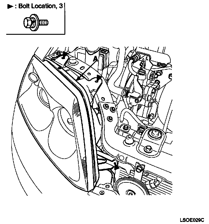 2. After loosening the mounting bolt, remove the headlamp (A).
