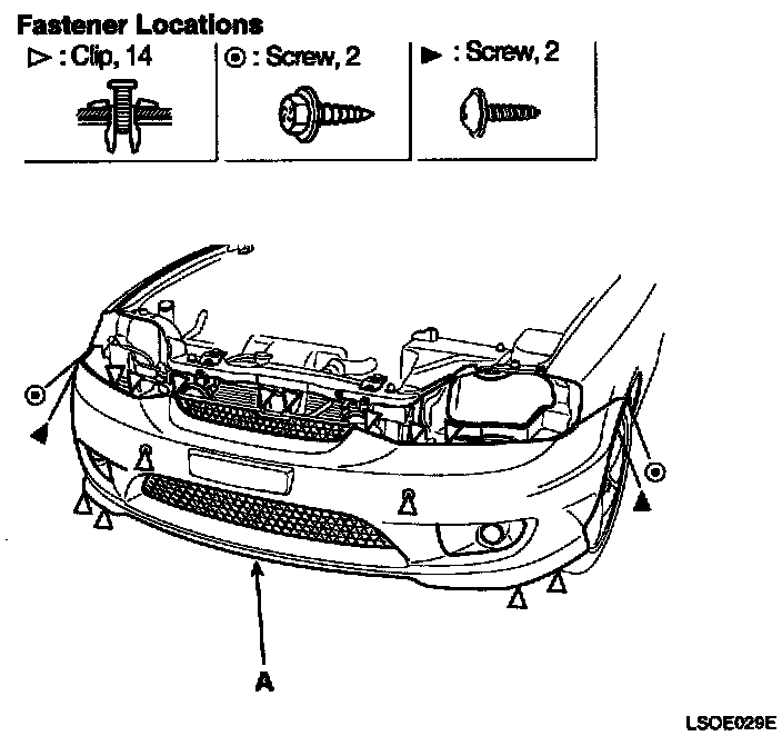 FRONT BUMPER COVER REPLACEMENT1. Remove the front bumper cover (A).