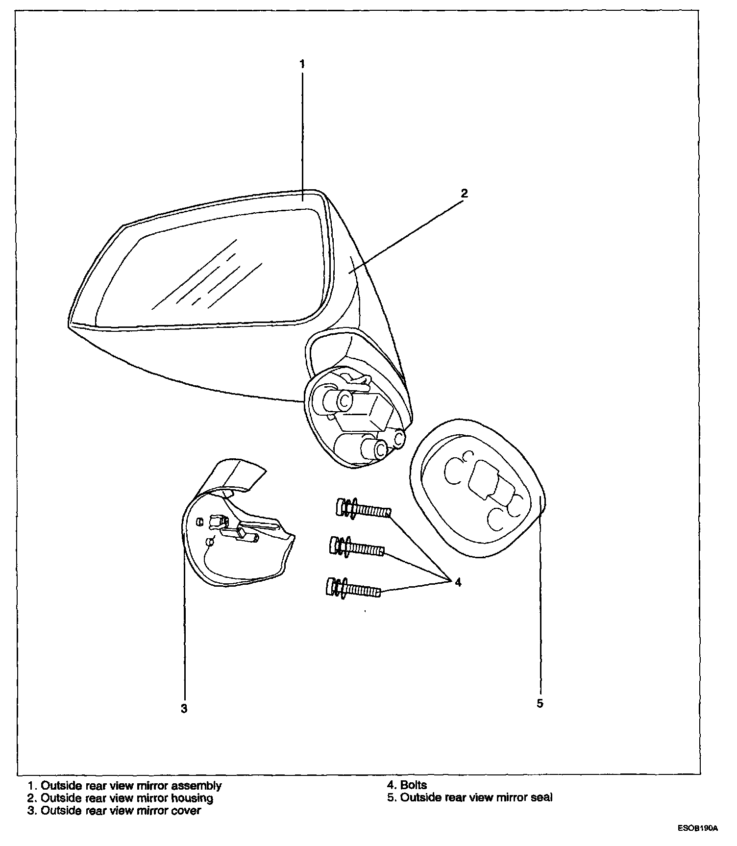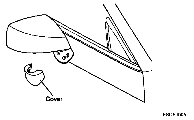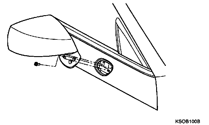 2. Loosen the mounting bolts, disconnect the connector and then remove the outside rearview mirror.