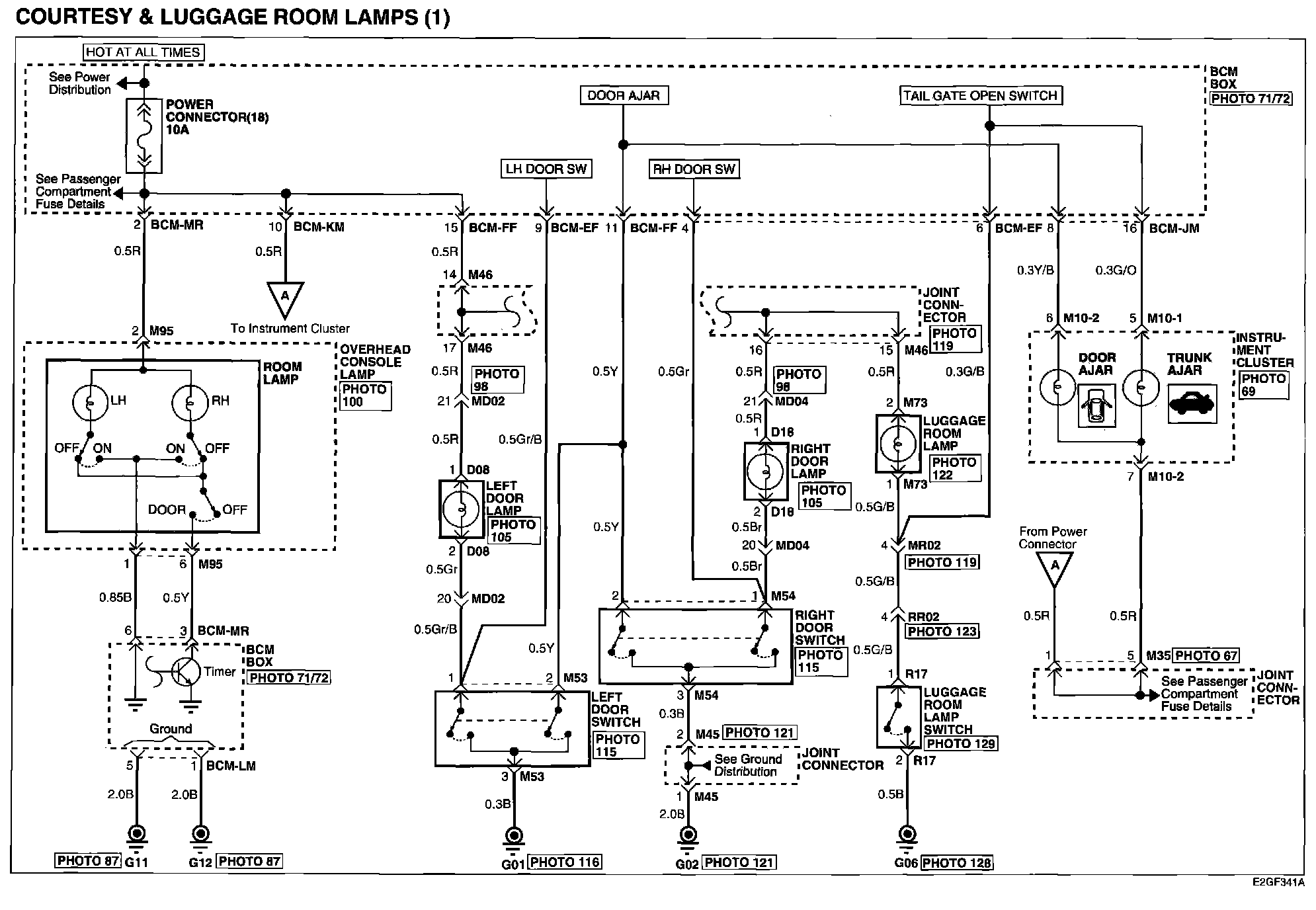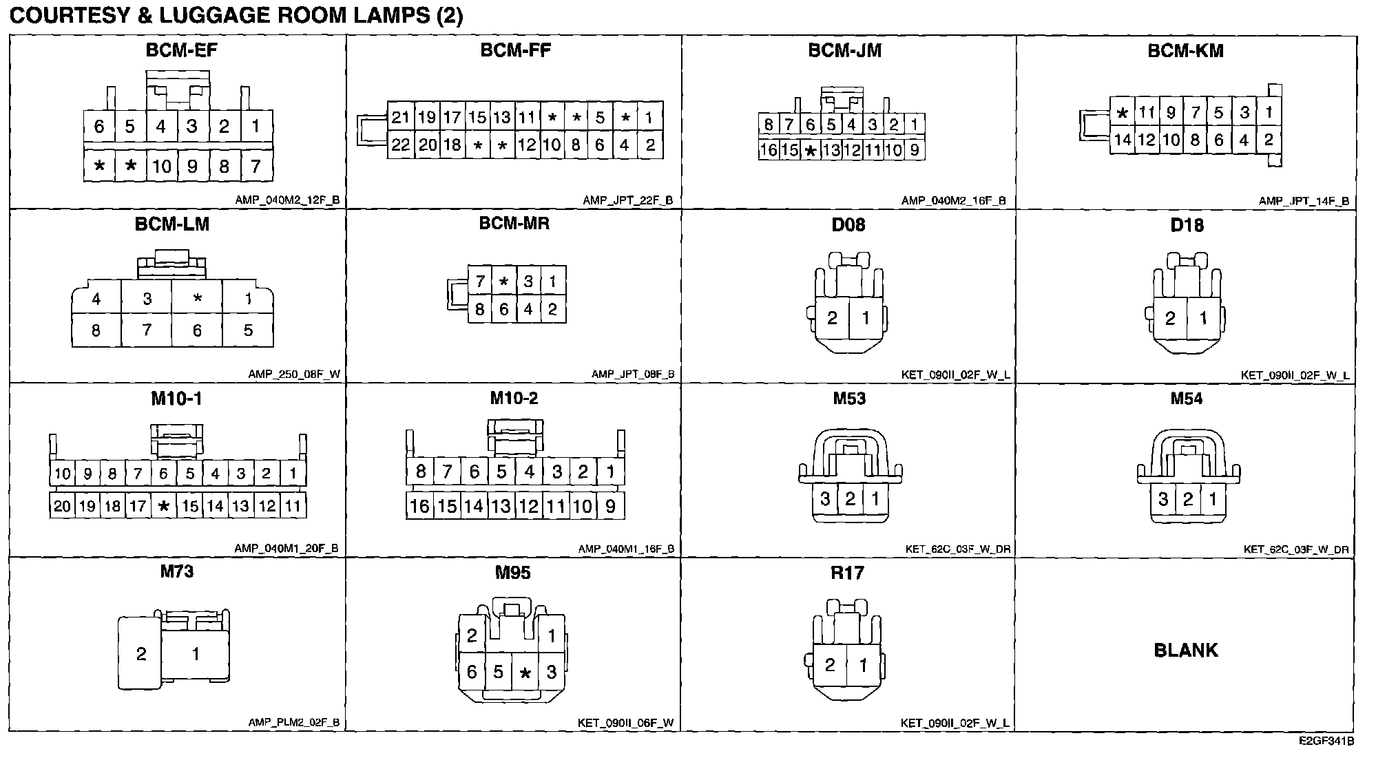 Courtesy & Luggage Room Lamps (2) Connector Pin Outs: