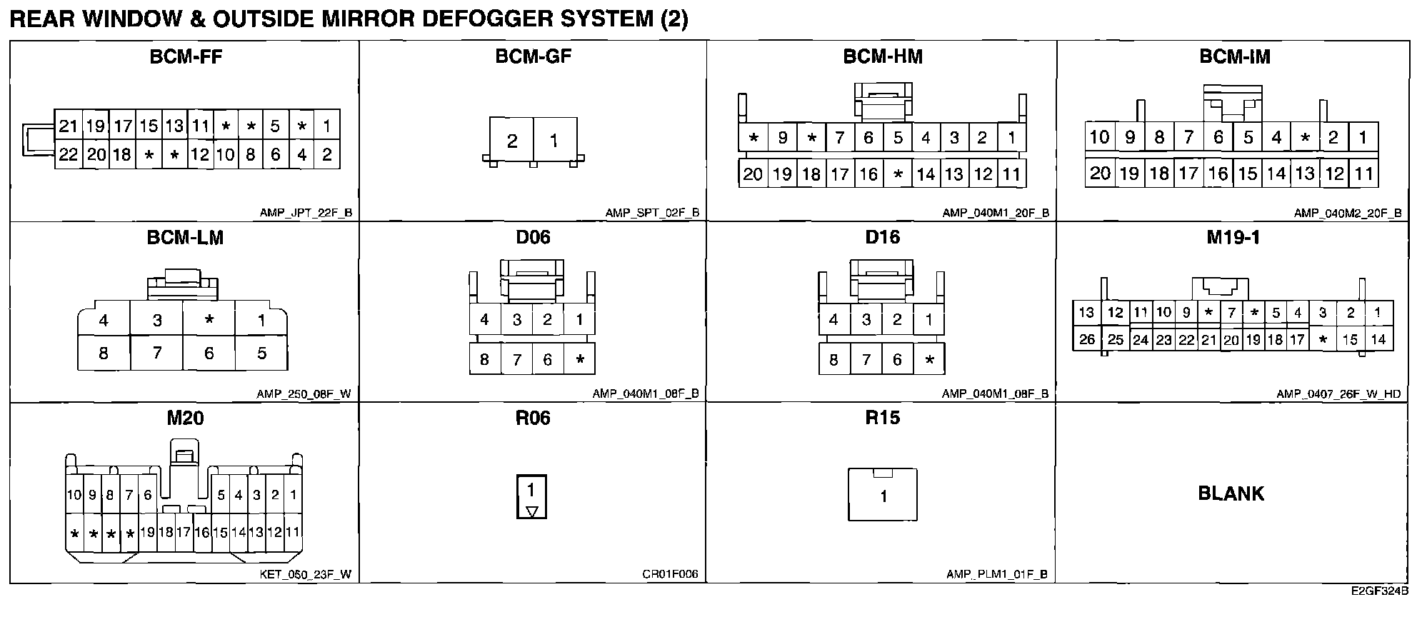 Rear Window & Outside Mirror Defogger System (2) Connector Pin Outs: