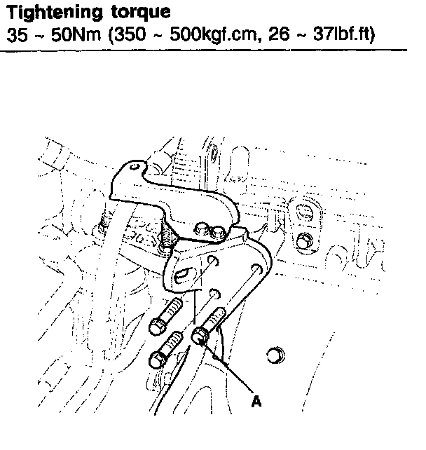 16. Install the power steering pump bracket bolts (A).