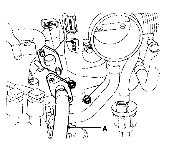 3) Connect the ground cable to the intake manifold (D).