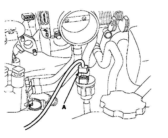 2) Front heated oxygen sensor connector (A).