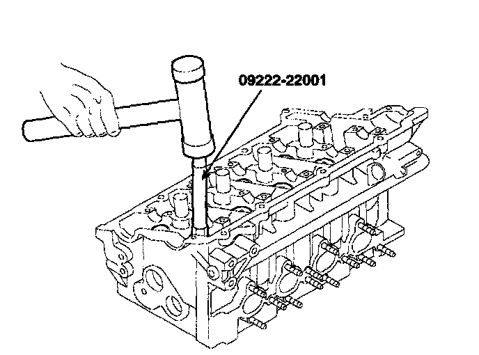 4) Using the SST (09222-28000, 09222-28100), compress the spring and install the retainer locks. After installing the valves, ensure that the retainer locks are correctly in place before releasing the valve spring compressor.