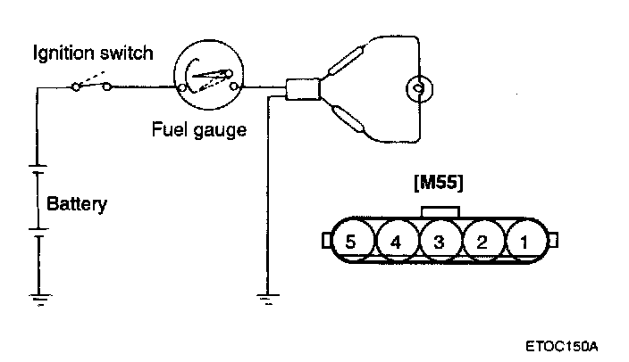 3. Turn the ignition switch to the ON, and then check that the bulb lights up and the fuel gauge needle moves to full.