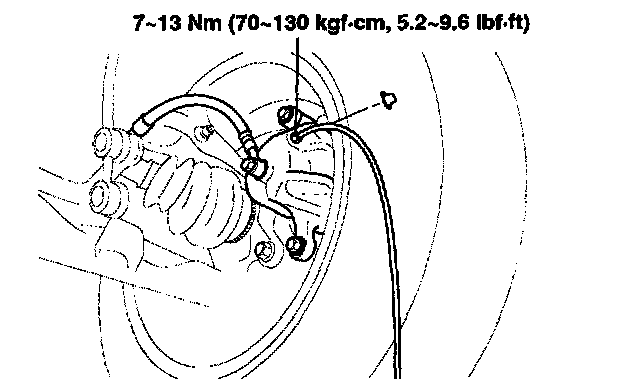 3. Loosen the right-rear brake bleed screw to allow air to escape from the system. Then tighten the bleed screw securely.