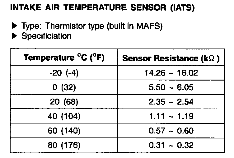 Air Temperature Sensor ( Ambient / Intake ): Specifications