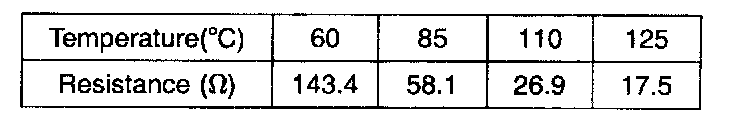 If the resistance value is not as shown in the table, replace the temperature sender.
