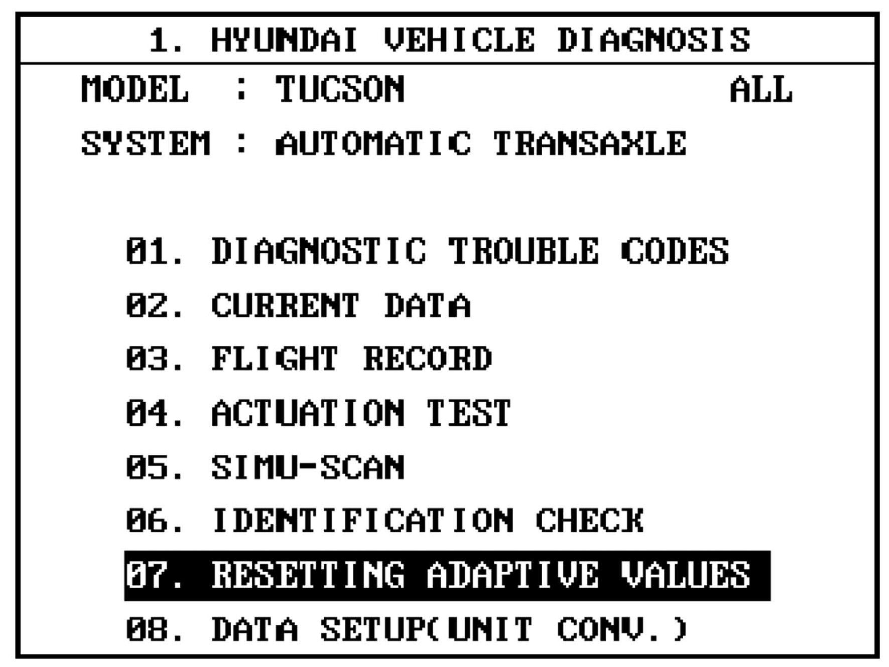 RESETTING AUTOMATIC TRANSAXLE ADAPTIVE VALUESMODEL: 2003 ELANTRA, 2005 TUCSON, SONATA, XG350, SANTA FE, TIBURON