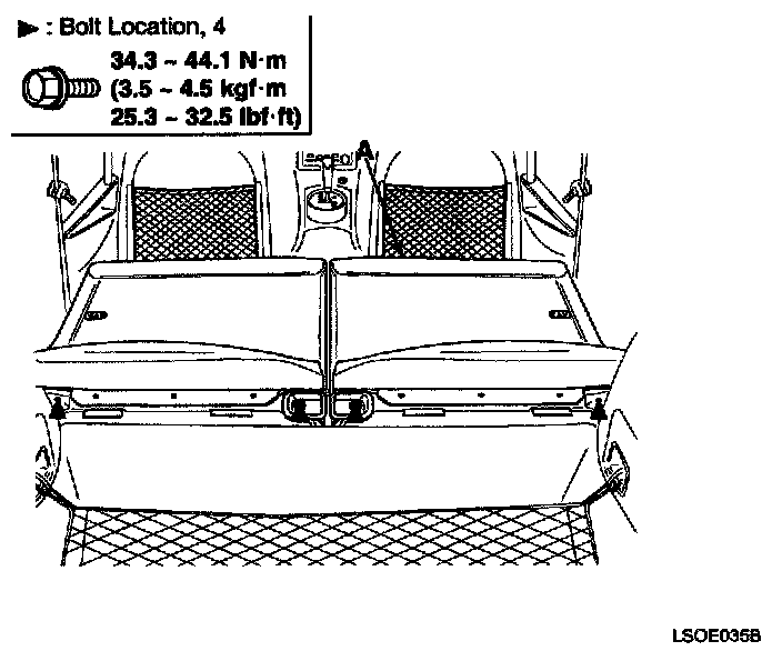 1. After loosening the rear seat back mounting bolt, remove the rear seat back (A).