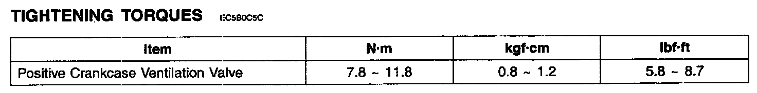 Positive Crankcase Ventilation Valve