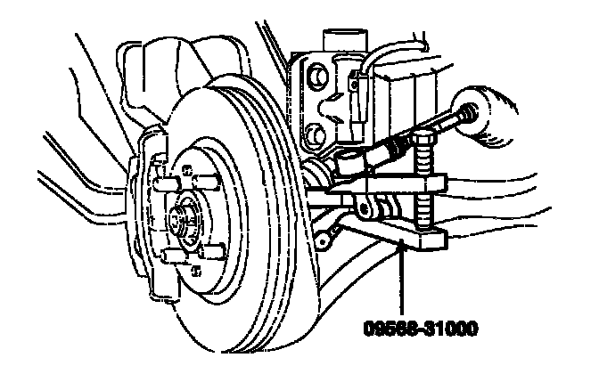 8. After removing the split pin, disconnect the tie rod from the knuckle by using the special tool (0956831000)
