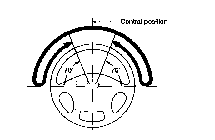 2. When the steering wheel is turned 90° and held for a couple of seconds while the vehicle is being driven at 35 kph, the steering wheel should return at least 70° from the neutral position when it is released.
