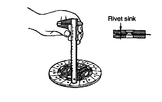 2. Measure the rivet sink and replace the clutch disc if it is out of specification