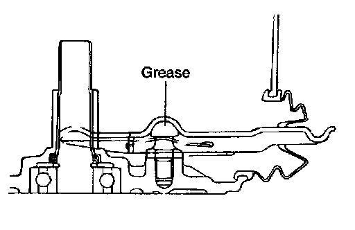 3. Apply multipurpose grease to the clutch release lever fulcrum contact surface of the clutch release fork assembly.