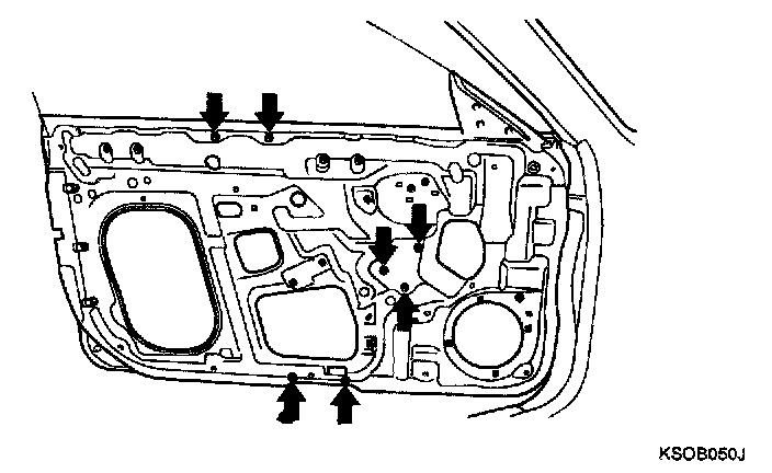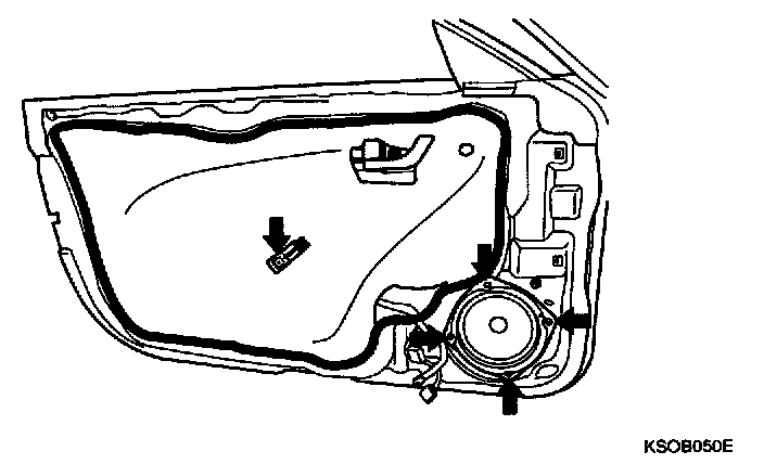 5. Remove the door grip handle mounting bracket, speaker and door trim seal.
