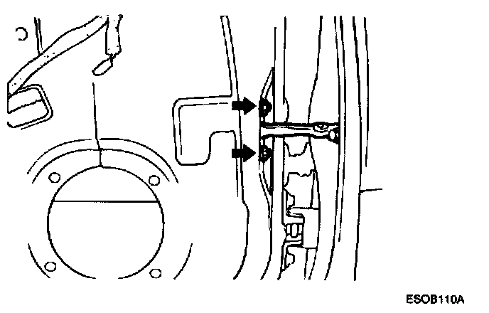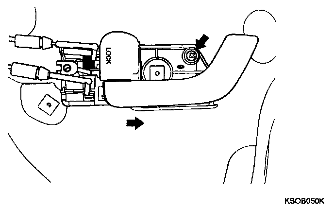 12. Disconnect the cable, after loosening the inner handle mounting screw, push the inner handle toward the direction shown in the illustration and remove it.