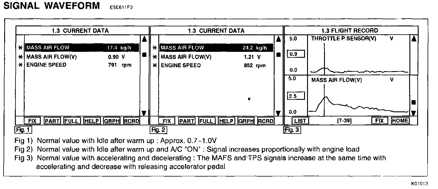 NOTE: If any codes relating to TPS or MAFS are stored, do ALL REPAIRS associated with those codes before proceeding with further troubleshooting