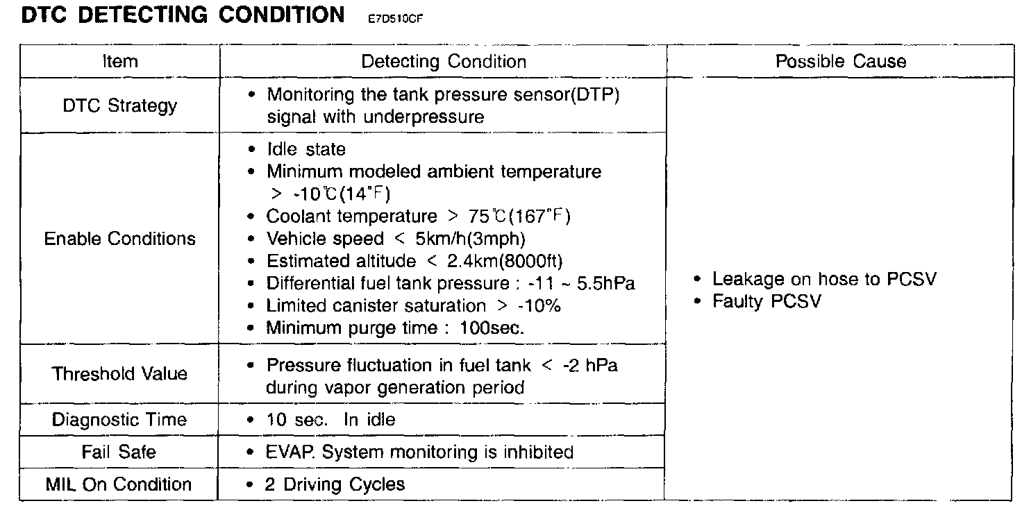 4. Perform "EVAP LEAKAGE TEST" mode referring to enable conditions as below.