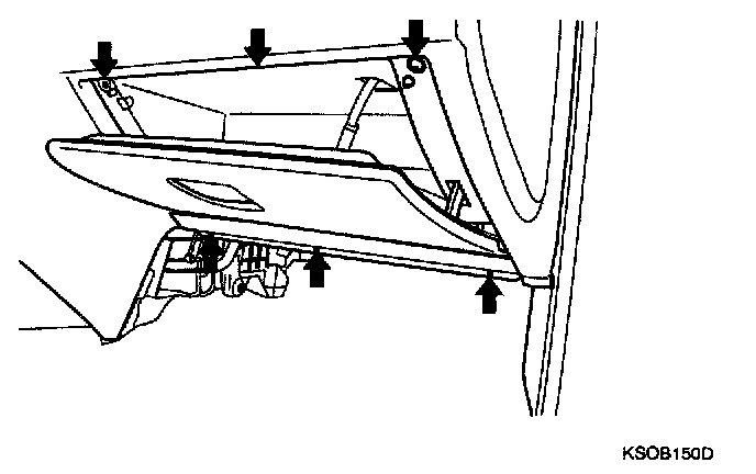 15. After loosening the 6 mounting screws shown in the illustration, remove the glove box.