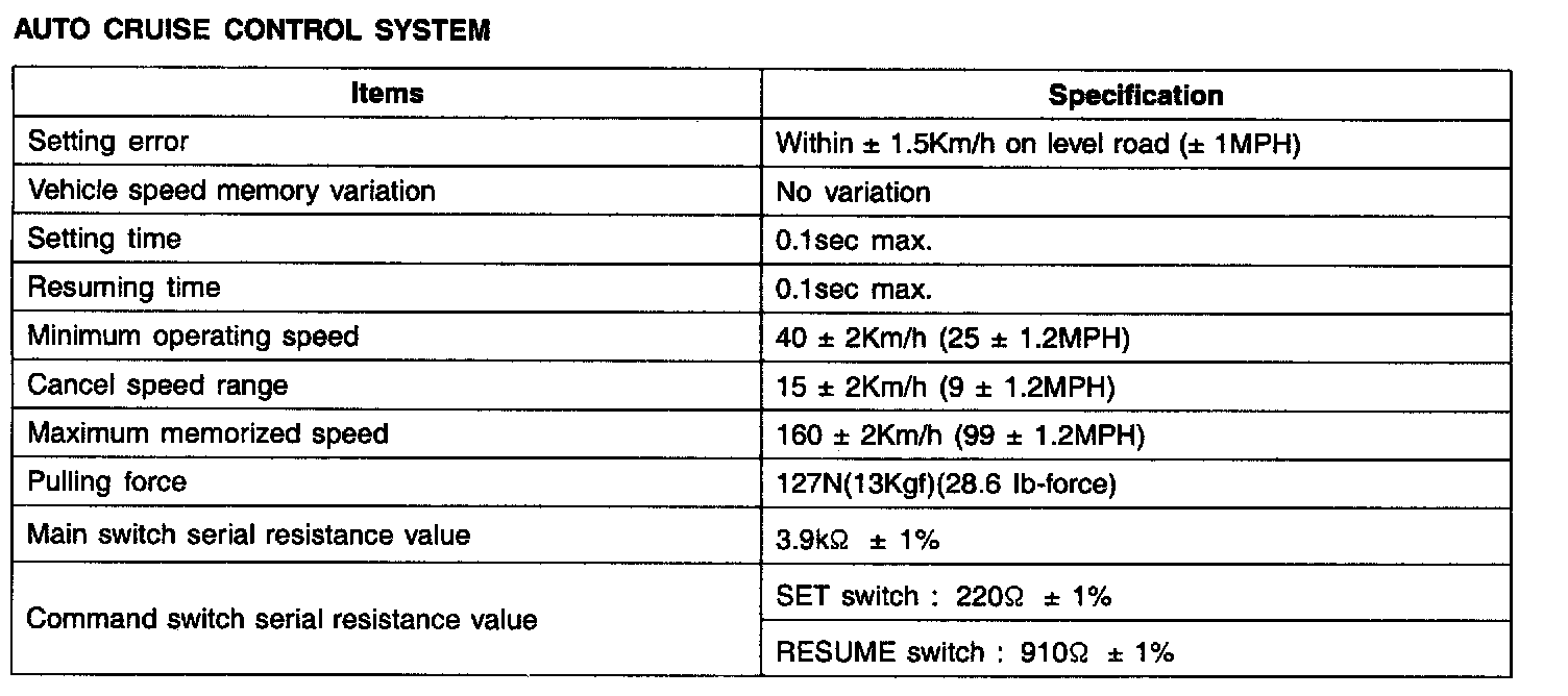 Cruise Control: Specifications