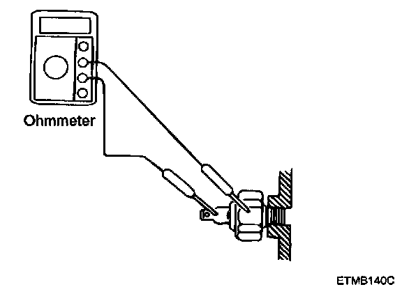 2. Check that there is no continuity between the terminal and ground with the engine running.