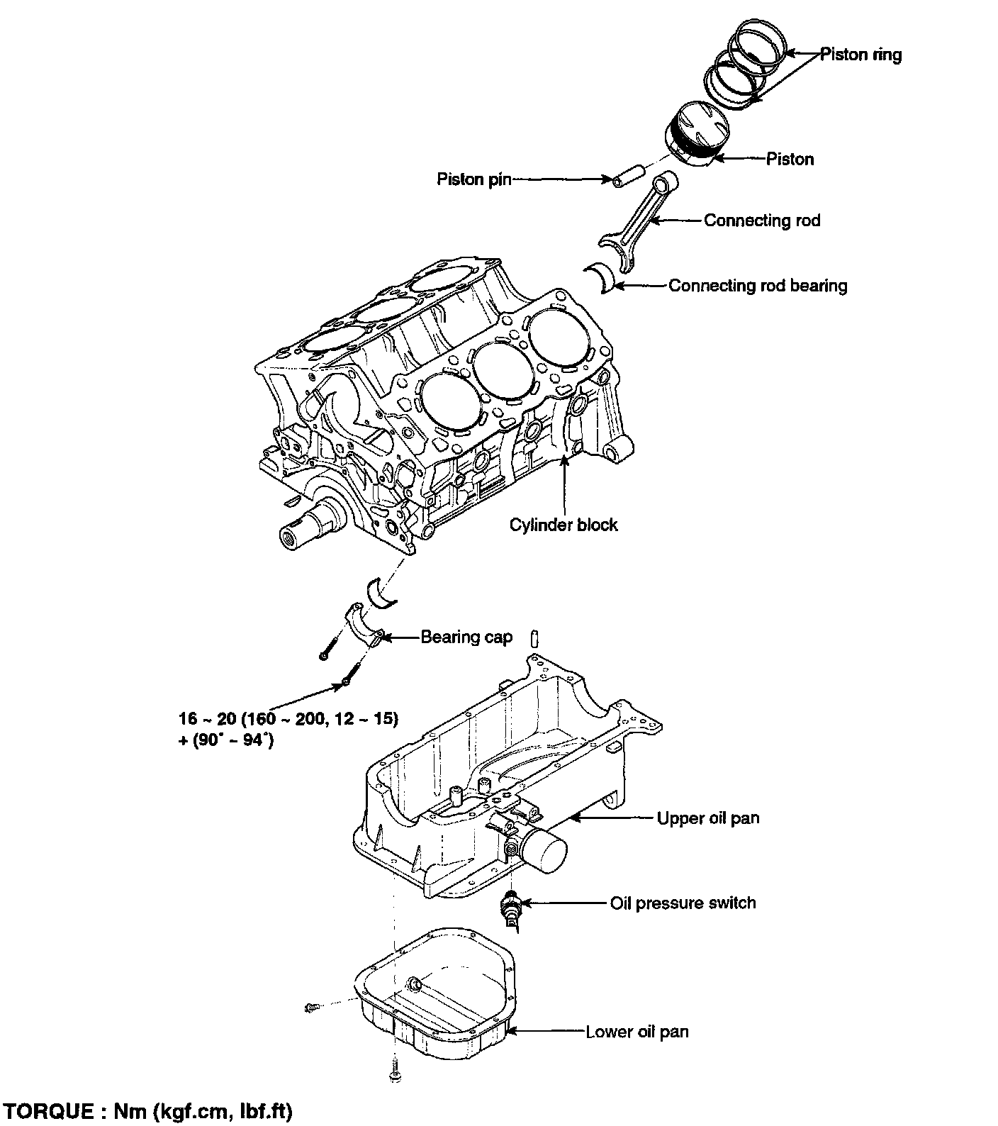 Tightening torque 16 - 20 Nm (160 - 200 kgf-cm, 12 - 15 ft. lbs.) + 90° - 94°