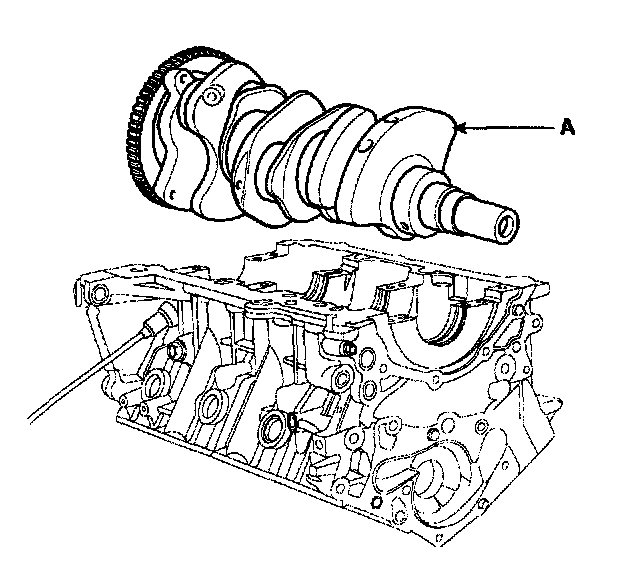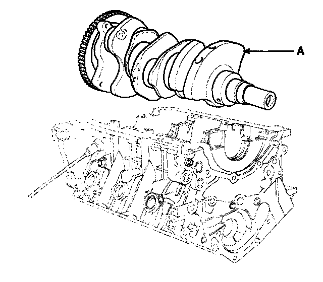 21. Lift the crankshaft (A) out of the engine, being careful not to damage journals.