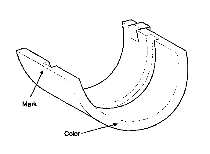 6) If the plastigage measures too wide or too narrow, remove the upper half of the bearing, install a new, complete bearing with the same color mark (select the color as shown in the next column), and recheck the clearance.